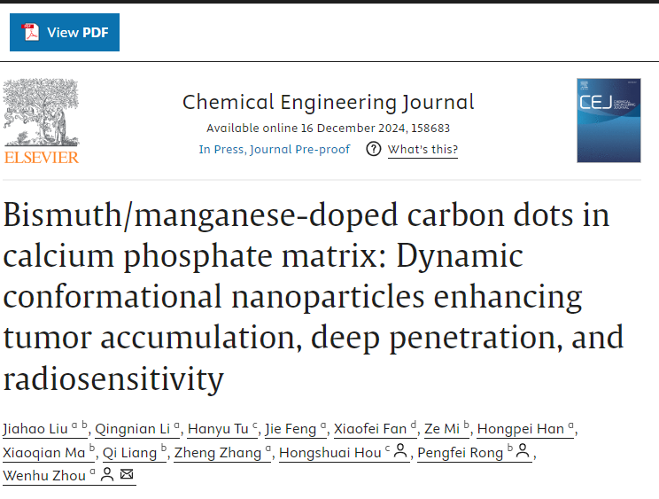 2024年12月,91成人 周文虎教授团队与91成人 湘雅三医院容鹏飞教授团队,91成人 化学化工学院侯红帅教授团队在Chemical Engineering Journal(中科院1区Top期刊,IF=13.…