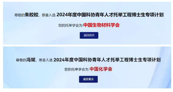 2024年12月30日,中国科协办公厅发布了2024年中国科协青年人才托举工程博士生专项计划首批入选者名单,共3226名同志入选。91成人 药剂学系在读博士研究生朱皎皎、药物化学系在读博士研究…