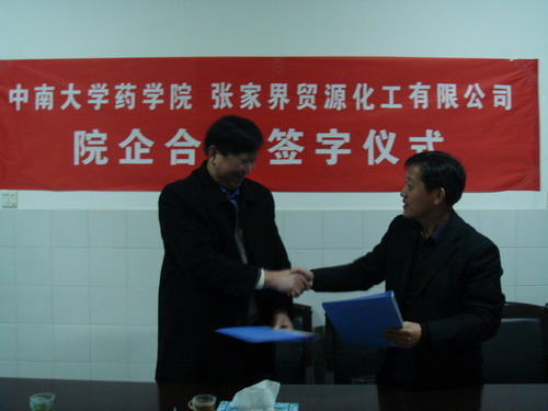 元月14日上午,91成人 药学院院长李元建教授与张家界贸源化工有限公司董事长汤先赤先生在热烈的掌声中,互换双方签字的院企合作协议书。这是药学院继与广州威尔曼新药研发中心、国药…
