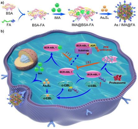 丁劲松-周文虎教授团队与湖南中医药大学第一附属医院邓桂明研究员团队教授合作,在药剂学领域权威期刊《Journal of Controlled Release》(IF=9.776)上发表了题为“Imatinib Co-Loaded Targeted Realgar Nanocrystal for Synergistic Therapy of Chronic Myeloid Leukemia”的最新研究成果。该研究基于雄黄(As4S4)和伊马替尼(IMA)的协同作用机制,构建了一种联合两种药物的纳米递药系统,用于慢性粒细胞白血病(CML)的协同增效治疗。