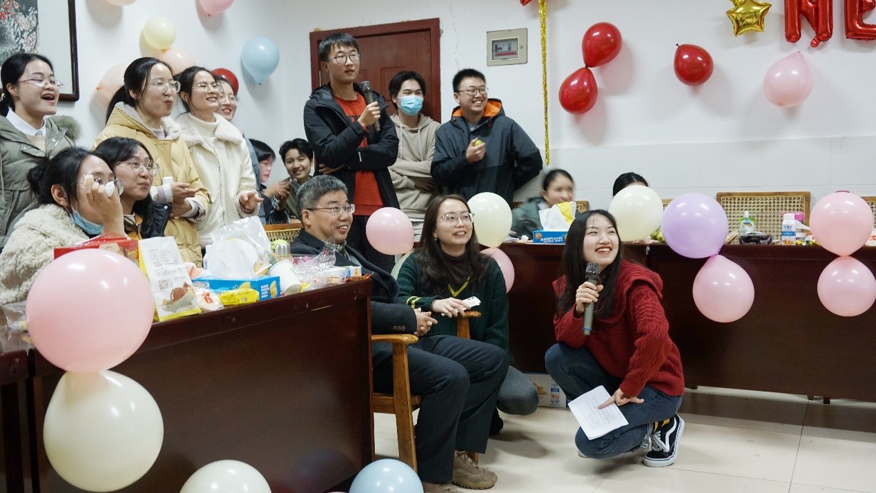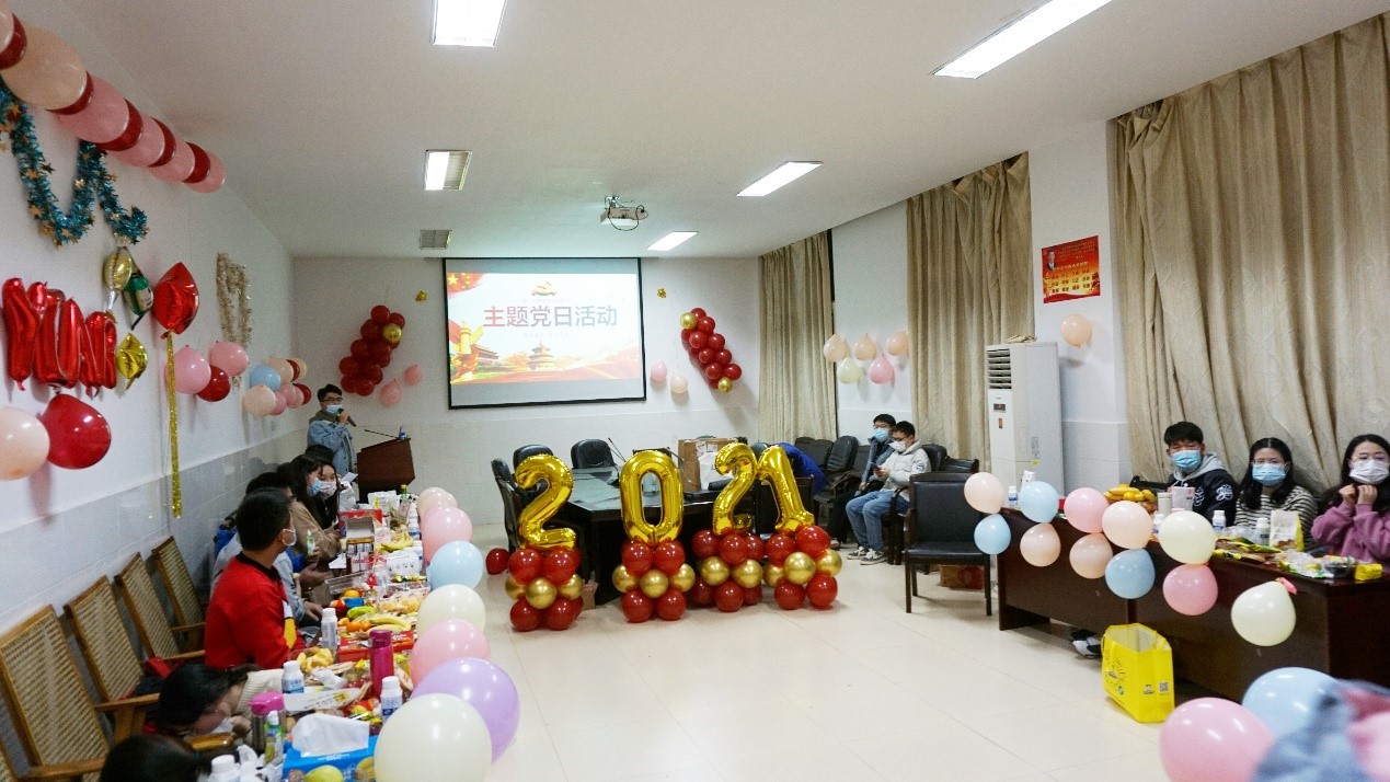药理学系在2020年12月30日19点举办一年一度元旦晚会,参会人员测量体温戴口罩有序进场。在晚会前组织开展——“使命在肩,奋斗有我”主题党日活动,全体同学深入学习十九届五中全会精神,党日活动结束后正式开始2021年元旦晚会,首先是20级新生介绍,展现了新生的风采。接着新生代表表演了《国家》的手指舞,赢得了全场的阵阵掌声,在欢声笑语中,同学们饕餮桌上的瓜果小食。最后,“不要笑挑战”,“我是影帝”,“开门大吉”三个游戏让同学们参与其中,其乐融融,尽享游戏带来的乐趣。本次晚会最大的亮点莫过于药理学系主任彭军教授“空降”会场,作为教师代表为同学们献唱一首《热情的沙漠》,祝愿同学们在新的一年里身体健康,科研顺利,展示了彭老师可爱亲和的一面,将全场火爆的气氛瞬间点燃,让同学们惊喜连连,全场欢呼。雄州雾列,俊采星驰,师生尽中南之美!祝愿药理学系所有师生在新的一年扬帆起航,再创辉煌!