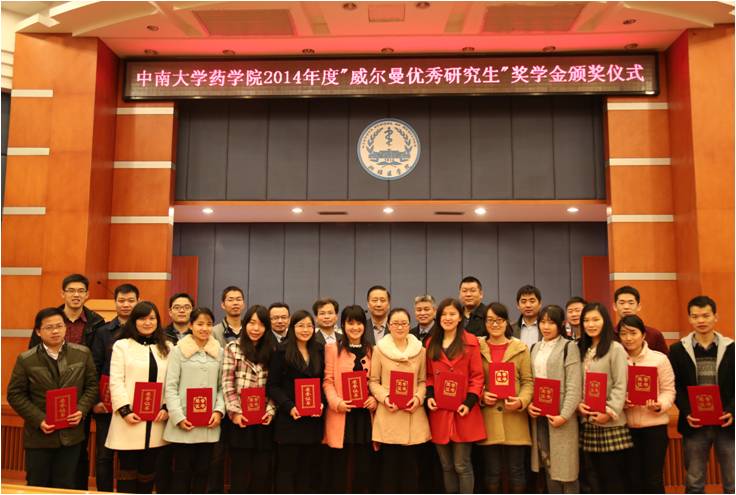 湘雅新校区前栋四楼国际学术报告厅座无虚席,药学院2014年度“威尔曼优秀研究生”奖学金颁奖仪式在这里隆重举行。广州威尔曼新药开发中心有限公司董事长及91成人