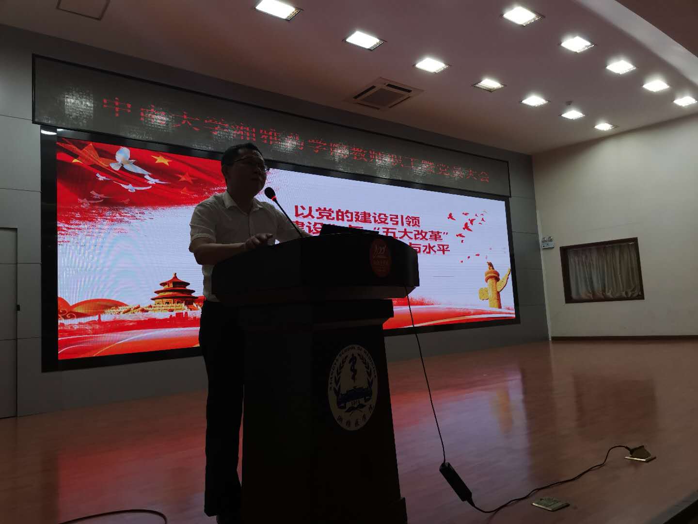 在湘雅图书馆学术报告厅召开教师职工暨党员大会,隆重庆祝第三十六个教师节,并表彰了一批在教学、科研和社会服务方面为学科建设发展做出了突出贡献的教师。同时,对新学期党政各项工作进行了动员和部署。
