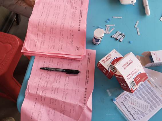 湖南省新宁县黄山村卫生室为配合实践活动内容,在宣讲会前后为村民进行了免费血糖、血压测量,并对村民的血糖、血压控制提出建议。