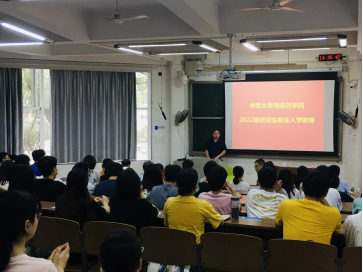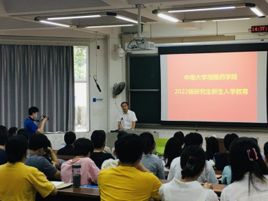 2022级研究生新生入学教育会议在湘雅新校区福庆楼T108召开。会议由分管研究生教育工作的胡长平副院长主持,学院党委书记龚涛、副院长(主持工作)刘昭前、党委副书记王昊、副院长曾文彬、副院长李乾斌出席会议,业务办及学工办部分老师参加了会议。此次会议在线上腾讯会议室同步进行,以便因疫情暂时未能入校的新生可以同时在线参加会议。