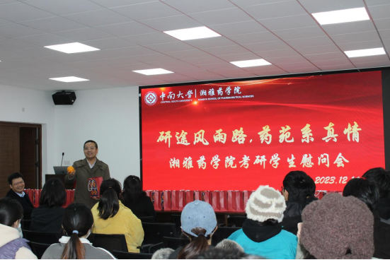 12月14日下午在药学楼C423报告厅开展2024届学子考研慰问活动。学院领导胡平安、阳国平、唐媛、张政,学工办桂玲智、唐春花参加此次活动。