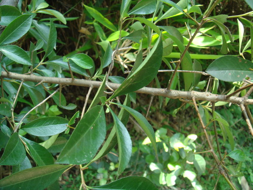 构棘Cudrania cochinchinensis (Lour.) Kudo et Masam.桑科柘属。别名葨芝、穿破石。直立或攀援状灌木;枝无毛,具粗壮弯曲无叶的腋生刺,叶革质全缘。花雌雄异株,雌雄花序均为具苞片的球形头状花序,本植株经常作为绿篱,也是种很好的蜜源植物。木材煮汁可作染料,茎皮及根皮药用,它的根系非常发达,根既长又粗,圆柱形,外皮金黄色或橙红色,极薄,出土后易爆裂脱落,称为“黄龙脱壳”、 “金蝉脱壳”,民间常用其根捣敷治跌打损伤。