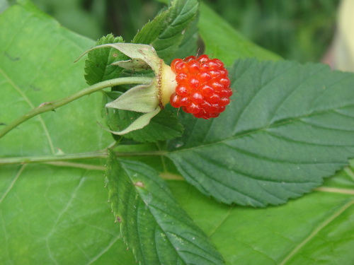 蛇莓Duchesneaindica(Andr.)Focke 蔷薇科蛇莓属。全草入药,有清热,凉血,消肿,解毒之效,用于热病,惊痫,咳嗽,吐血,咽喉肿痛,痢疾,痈肿,疔疮,蛇虫咬伤,汤火伤。 图为蛇莓果