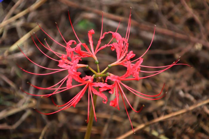 起。后来玉皇大帝知道后,十分的生气,命诸神将他们抓回天堂,给他们两人立下了狠毒的诅咒,为了让彼神、岸神不在一起,将它们变成花朵,彼神是花,岸神是叶,花凋了才长叶,叶枯了才抽葶开花,让他们生生世世花叶两相错。看,那鲜红的花朵像不像一只对天堂祈祷的手掌,那么虔诚热烈而又绝望……这故事太凄美了,看来不被祝福的爱情太难了,但愿这只是个大人吓唬小孩子的传说。