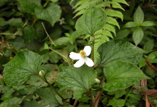 4.鱼腥草:看到它的白色的小花,很是漂亮,但当我们把它连根拔起的时候,我终于明白它为什么叫鱼腥草了,真的有一股很冲鼻的鱼腥味,老师说,它可以做菜吃,只要处理干净了,就没有什么异味了。